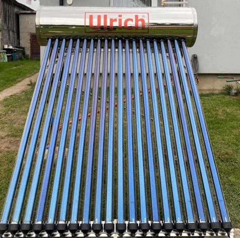 Słoneczne podgrzewacze wody ULRICH SOLAR-MAX seria SM składają się z rur próżniowych z rdzeniem miedzianym "heat pipe" do zbierania ciepła, zbiorników do przechowywania wody, wsporników i innych powiązanych części stelaża.