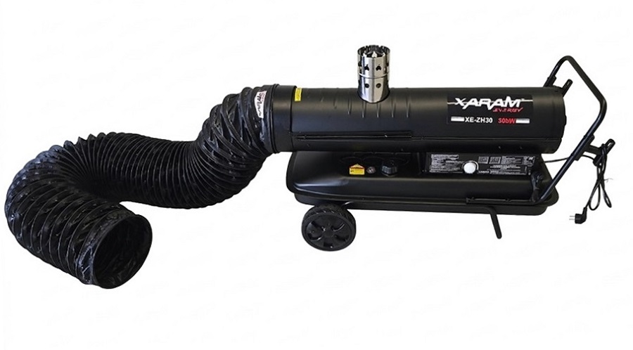 I. Nagrzewnica olejowa XARAM Energy XE-ZH30+ z zamkniętą komorą spalania przeznaczona do ogrzewania stref i budynków, gdzie przebywają ludzie i zwierzęta