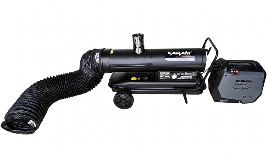Zestaw grzewczy mobilny XARAM Energy XE-ZH50+ZGA2I z przewodem antystatycznym i z przenośnym, bardzo cichym 63,5dB agregatem prądotwórczym inwerterowym GDA 2500 o mocy 1,8/2kW został zaprojektowany przez MARAX Import-Export specjalnie dla służb anty kryzysowych i ratowniczych.